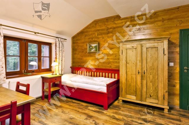 L’ hôtel Na Modravě est un hôtel de style, récemment construit, sur la rivière Šumava. La clientèle a le choix entre des chambres à deux, trois, ou quatre lits, et éventuellement cinq chambres familiales, organisées à partir deux grandes chambres à coucher. Cet hôtel comportant 56 chambres nous a choisi pour fournisseur de la plupart des meubles et pour équiper le restaurant et le bar de celui-ci. Les chambres ont été équipées de meubles de différentes couleurs en bois tendre.