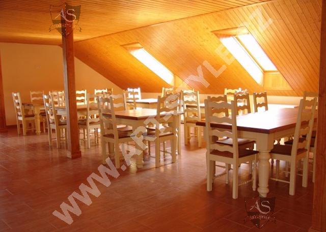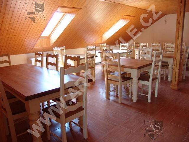 La pâtisserie de Kamenice (arrondissement de Prague-Est) est équipé dans l’esprit tchèque ancien. Notre entreprise a fabriqué les chaises et les tables sur commande. Les tables sont toutes laquées, aux teintes beurres-pures et les chaises sont également laquées à la teinte SM1.