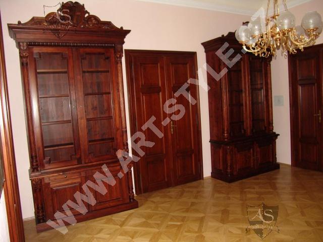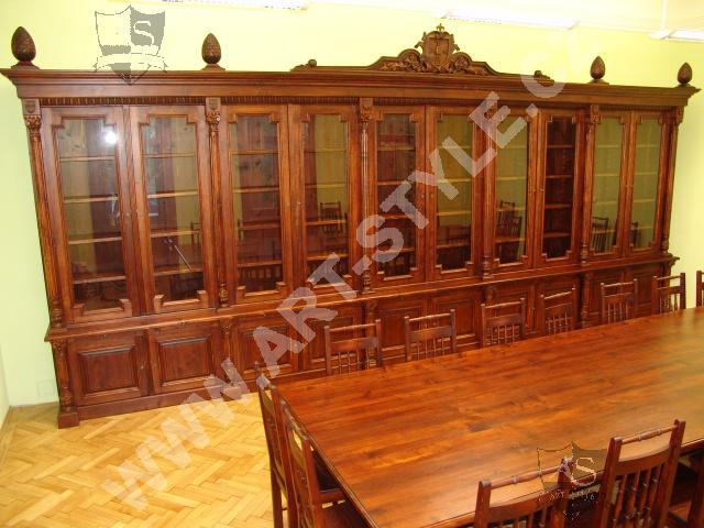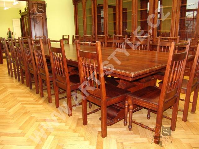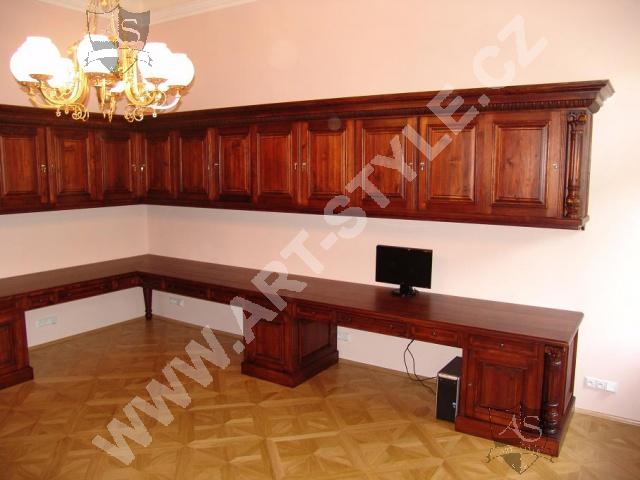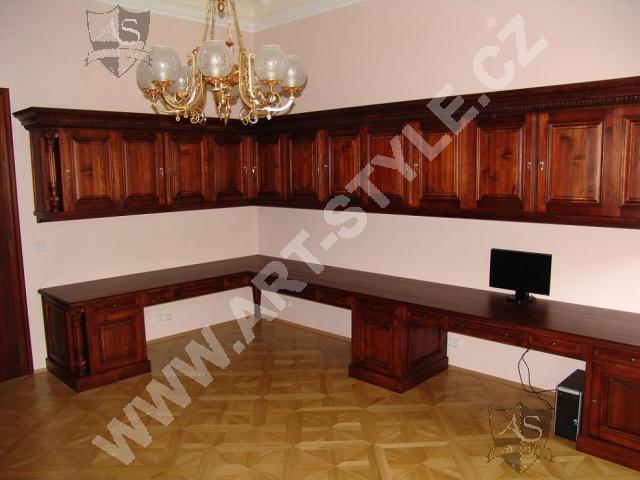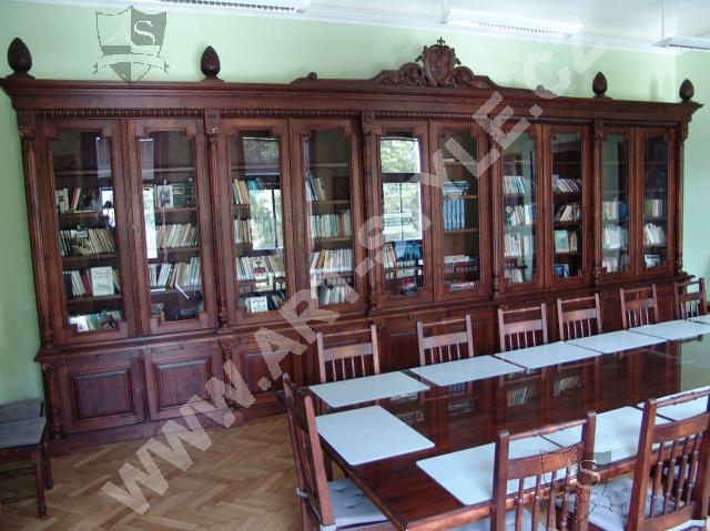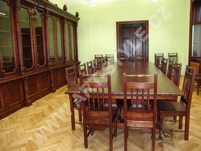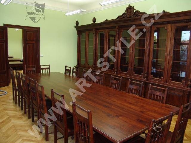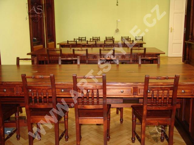 Le lycée religieux de l’ordre allemand à Olomouc a été équipé par l’entreprise ART-STYLE selon les demandes exigeantes de l’investisseur: deux bibliothèques colossales, des blasons gravés à la main, des chaises selon les modèles qui nous ont été donnés, une table pour 18 personnes aux dimensions 3,6m de long et 1,6m de large, et d’autres éléments d’intérieur intéressants et compliqués à la fois à réaliser. L’intérieur a été ensuite complété par trois tables pour ordinateur fixe, chacune pour 8 étudiants. L’investisseur nous a sollicité au cours de la deuxième étape deux autres bibliothèques pour l’espace administratif, en même temps qu’un grand bureau, dont les compartiments du haut sont fixés au mur. Tout ceci a été fabriqué en bois d’épicéa et verni.